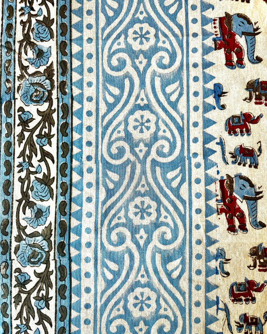 Hand Block Printed Tablecloths: Elephants in Precession