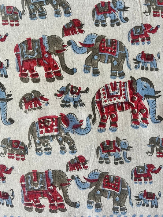 Hand Block Printed Napkins Elephants in Precession
