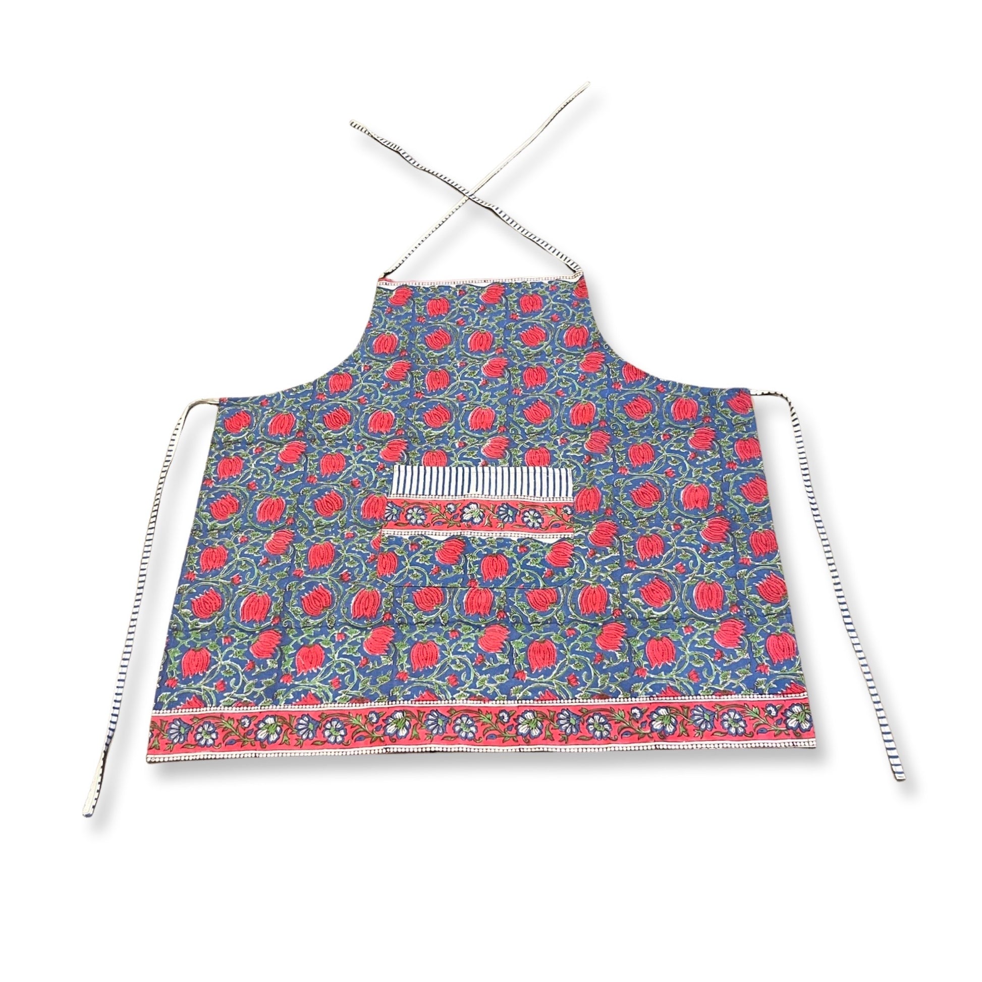 Fun tie-back apron hand block printed apron with a handy front pocket. Add a little flair to your kitchenware.