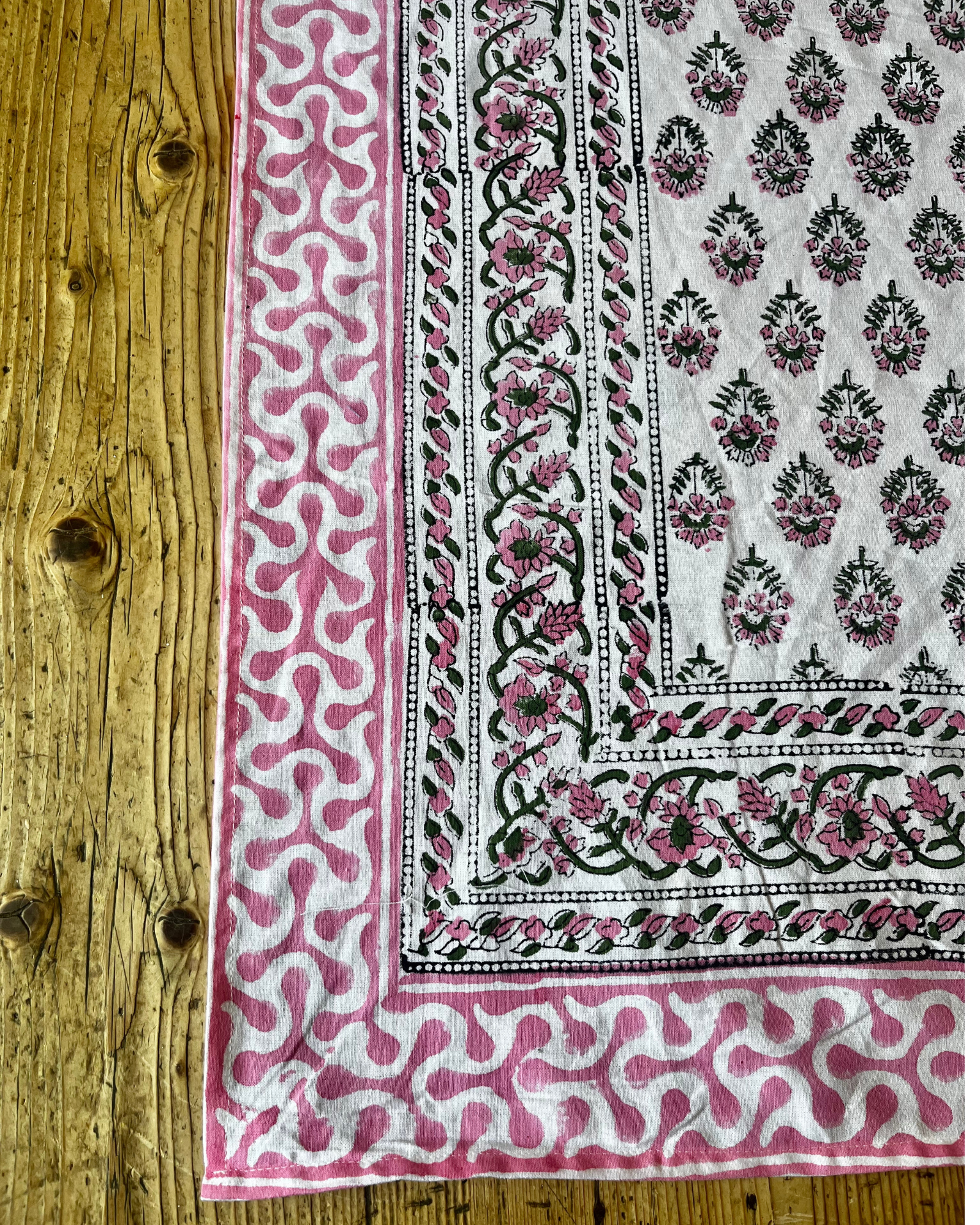 Gorgeous hand-block printed tablecloths, printed by a family-run group of artisans in Jaipur, India.