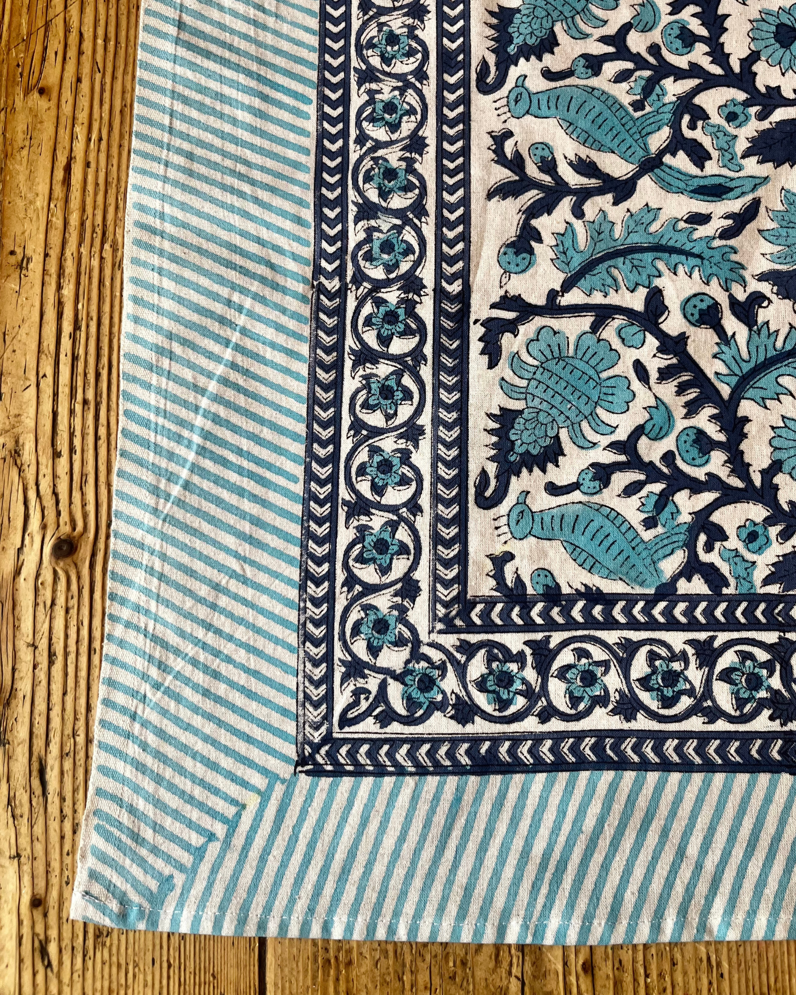 Hand Block Printed Tablecloths Turquoise Peacocks